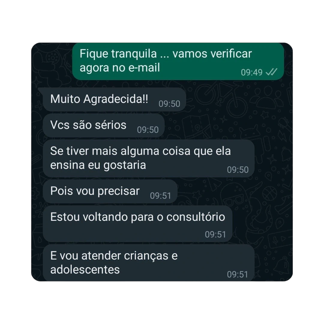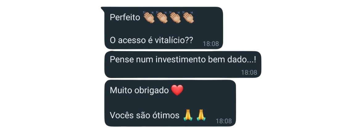 “Depoimento que recebemos no nosso Whatsapp de suporte aos clientes "