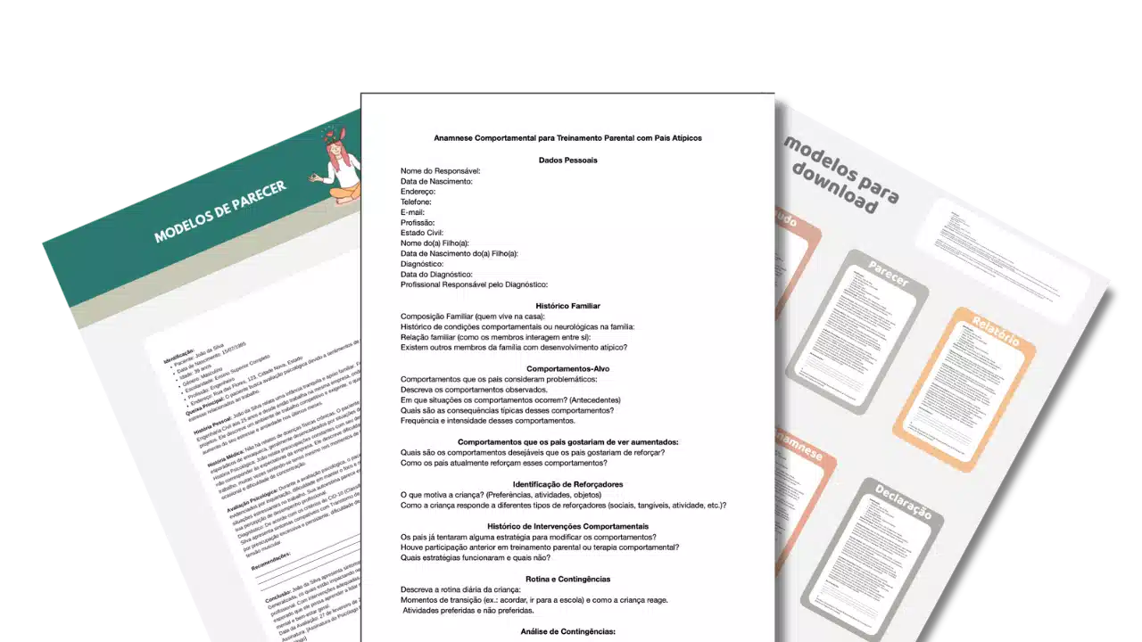 O kit contém mais de 120 modelos adaptáveis para diferentes contextos clínicos e escolares. Ele cobre desde anamneses até relatórios detalhados, permitindo que você personalize os documentos conforme o perfil do seu atendimento.